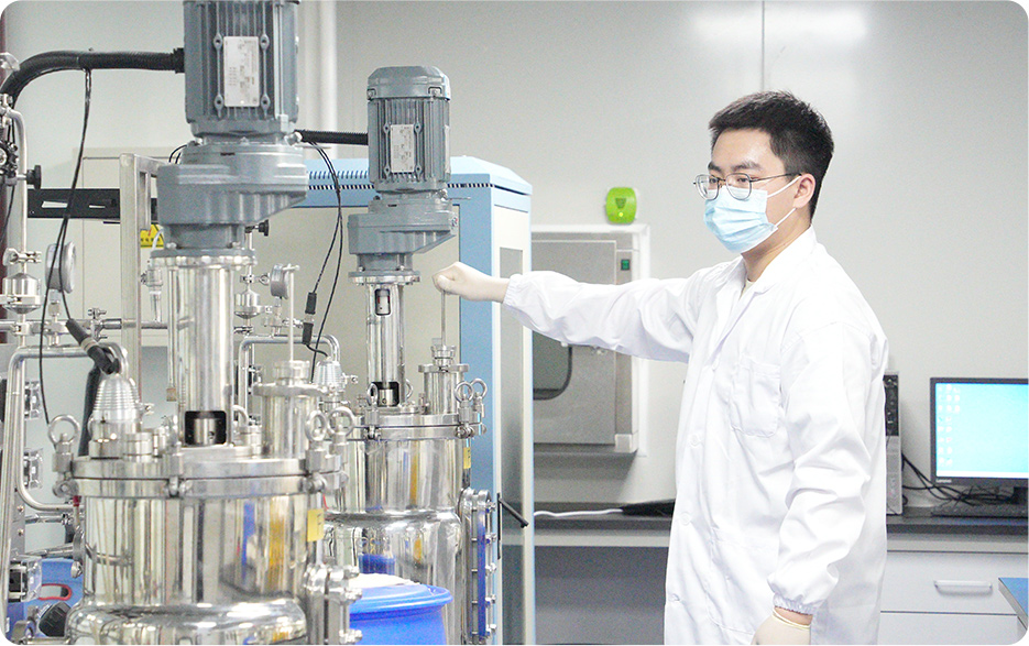 由发酵实验室、检测实验室组成,配置有5L-50L-100L-1000L的不同体积的发酵罐,以及多种精密检测仪器,进行从0-1-10的发酵工艺放大,为工业化生产蘡定基础条件。